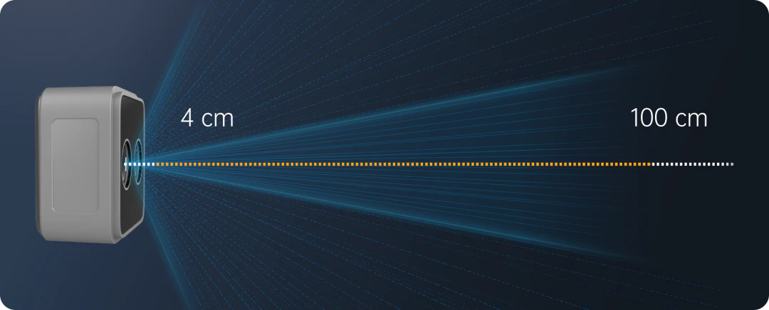 4–100 cm+ Imaging Range with Sub-millimeter Accuracy at 15 cm