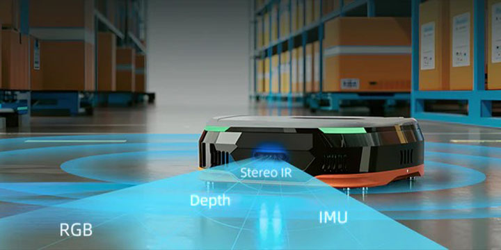 Supports simultaneous execution of diverse tasks such as VSLAM and 3D scene reconstruction. Integrates depth, stereo IR, RGB, and IMU; Outputs high-quality point cloud, texture, color, motion, and timestamp information.